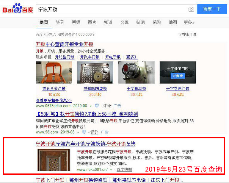 寧波開鎖 百度(PC)自然排名第1名,360搜索、搜狗、手機(jī)搜索等均也有比較好的排名...